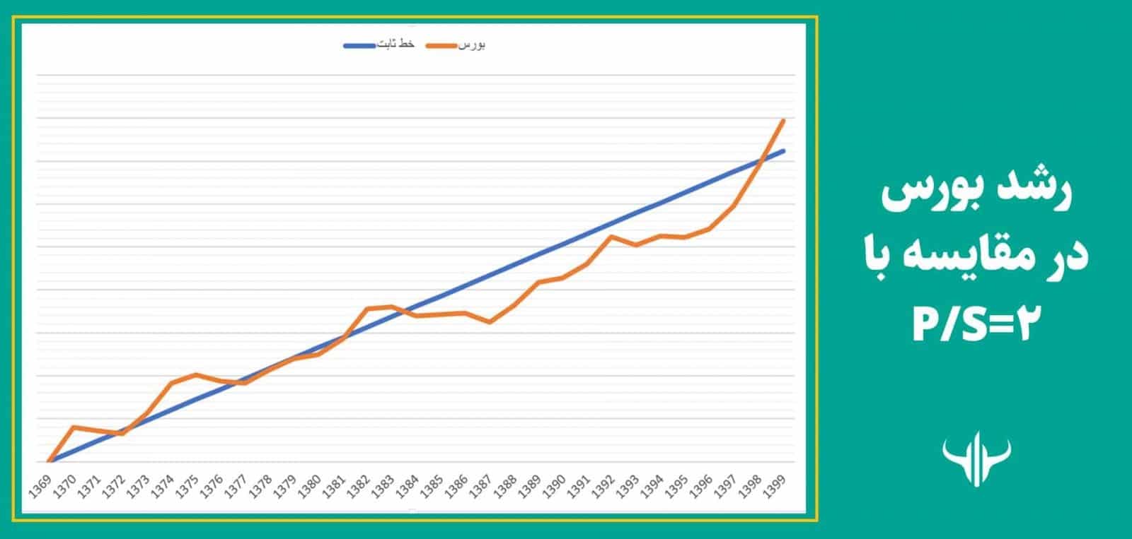 اگر قبول کنید که بازار دارد در اطراف خط ثابت 32 درصد نوسان میکند، یعنی پذیرفتهاید که رشد نقدینگی با نرخ متوسط 20 درصد و P/S برابر با 2، محرک اصلی بازار سرمایه هستند.