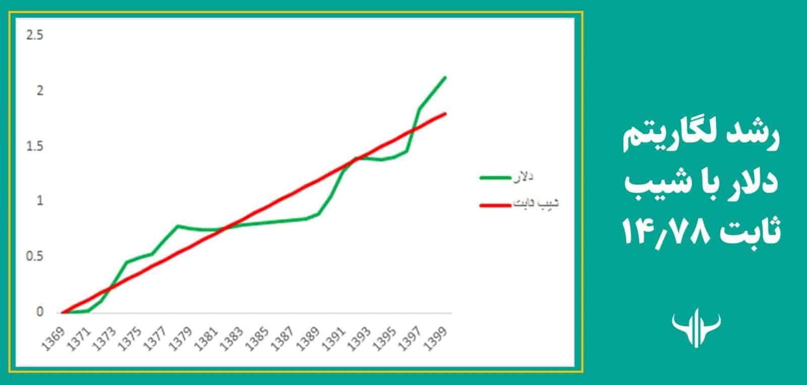 یکبار دیگر، چنانچه حس میکنید دلار دارد از ترند ثابت پیروی میکند، یعنی شیب ثابت 14.78 را برای رشد دلار پذیرفتهاید.