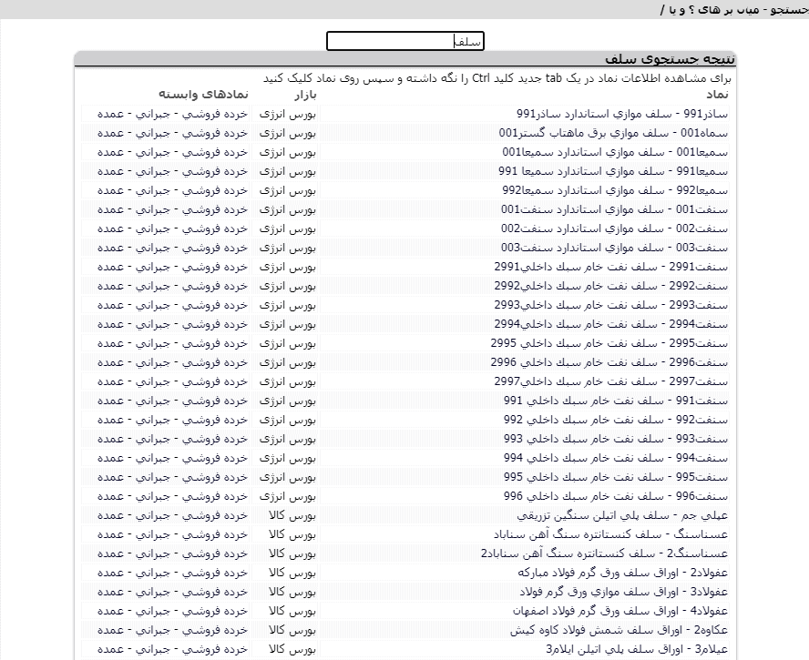 در سایت مدیریت فناوری بورس تهران می‌توان نمادهای مورد معامله در بازار سلف موازی استاندارد را مشاهده کرد. با جستجوی نماد مورد نظرتان و یا عبارت سلف می‌توانید نمادهای مورد نظرتان را بیابید.